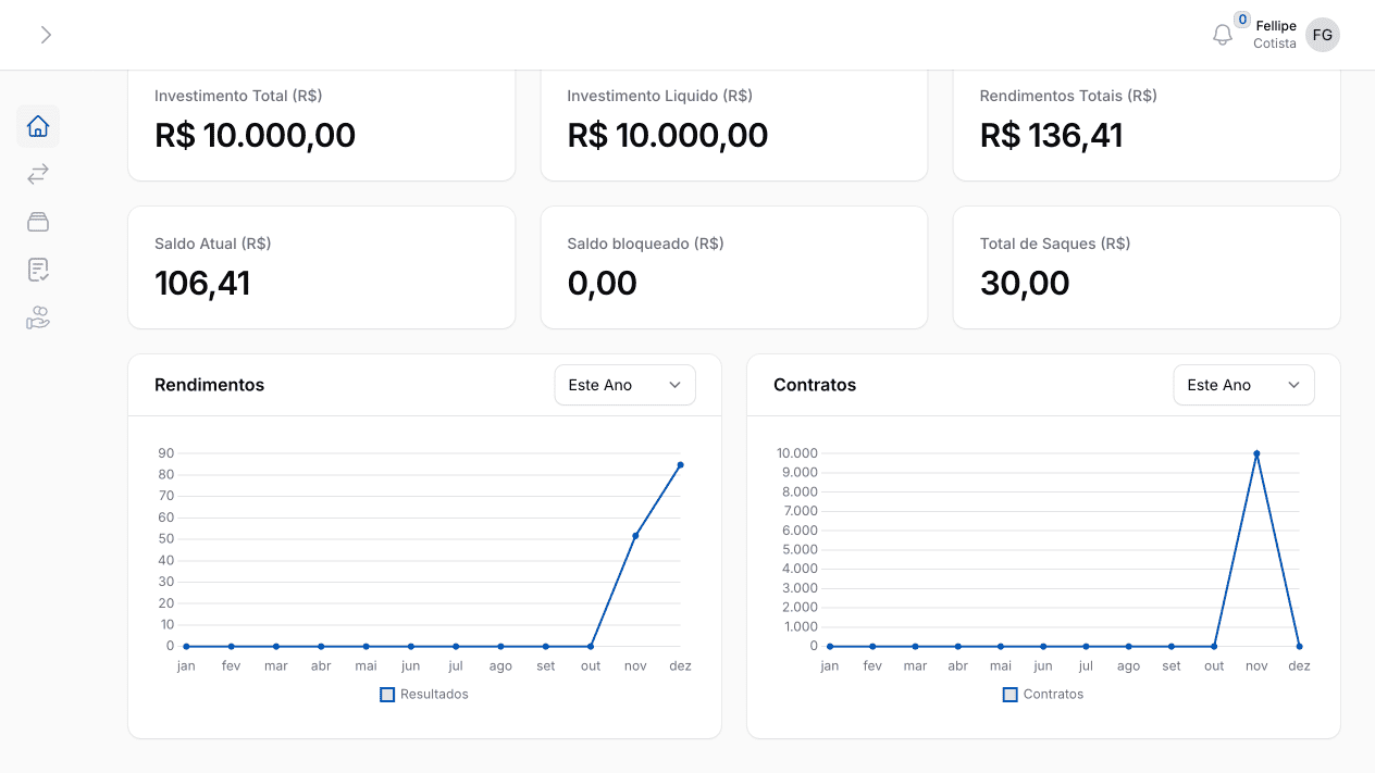 Você receberá acesso à nossa plataforma completa onde poderá acompanhar em tempo real ao dashboard com todos os dados de rentabilidade, aportes e muito mais. A transparência é total em cada etapa.