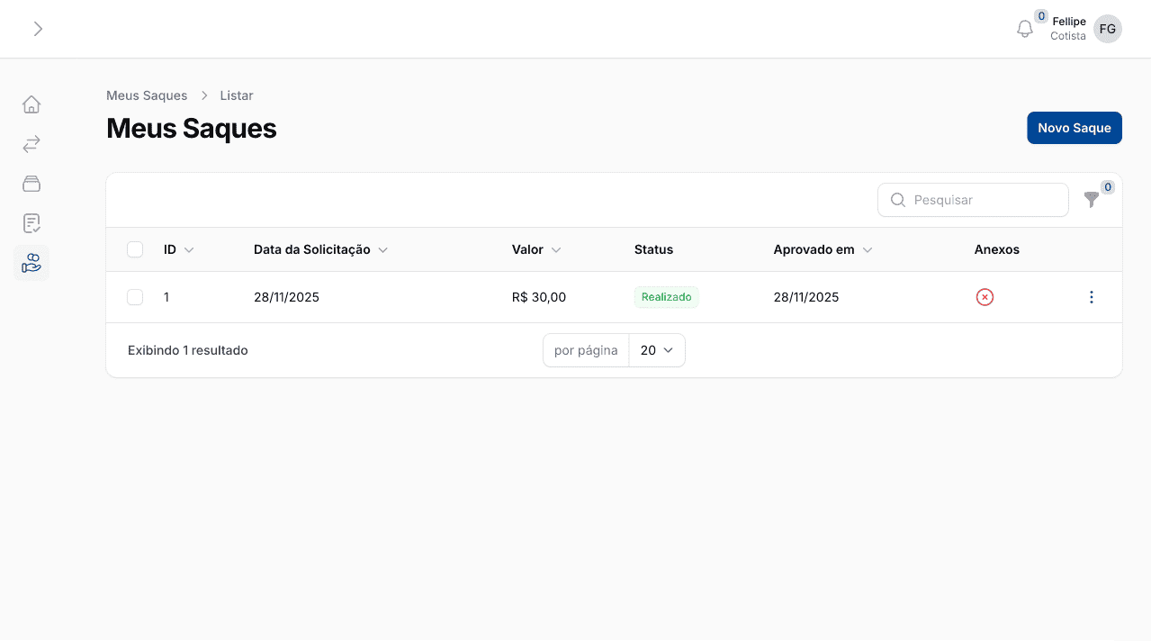 Acompanhe suas movimentações, produtos, saques e contratos.